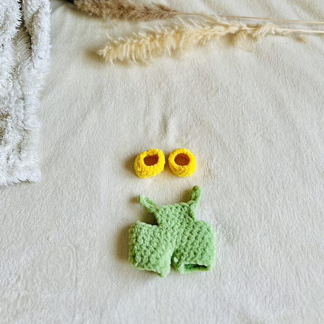 Salopette verte et chouchou d’oreille jaune